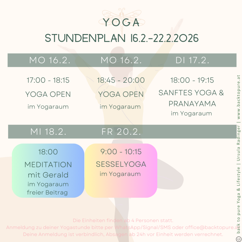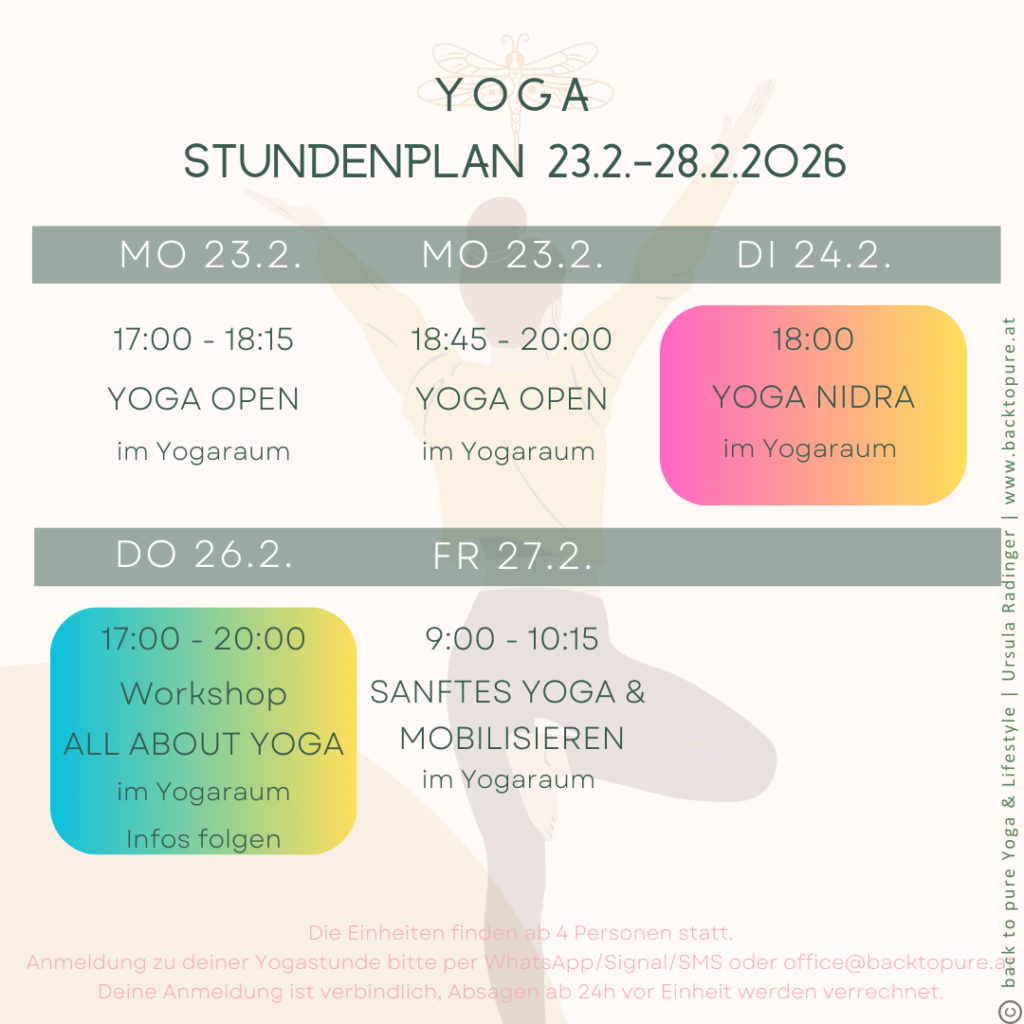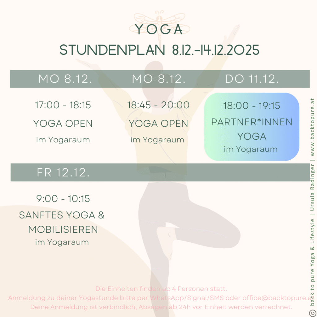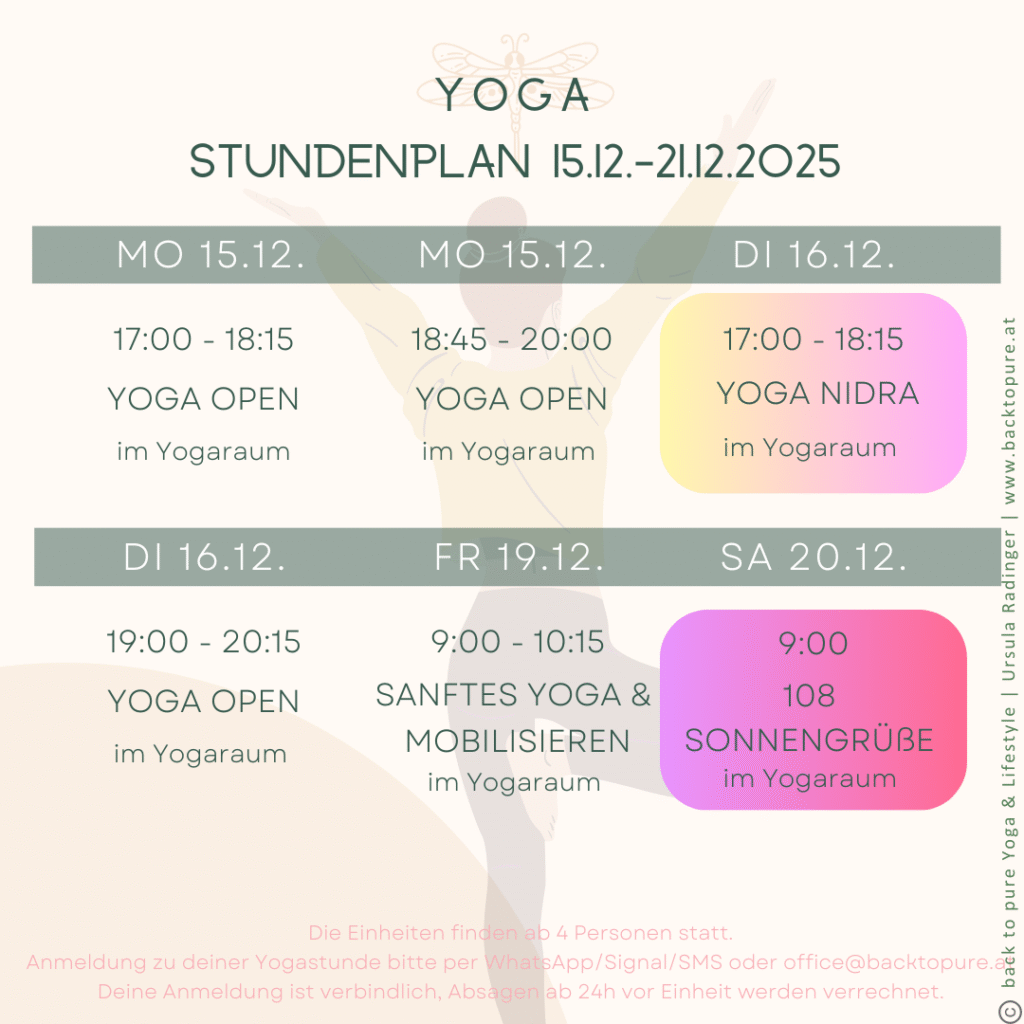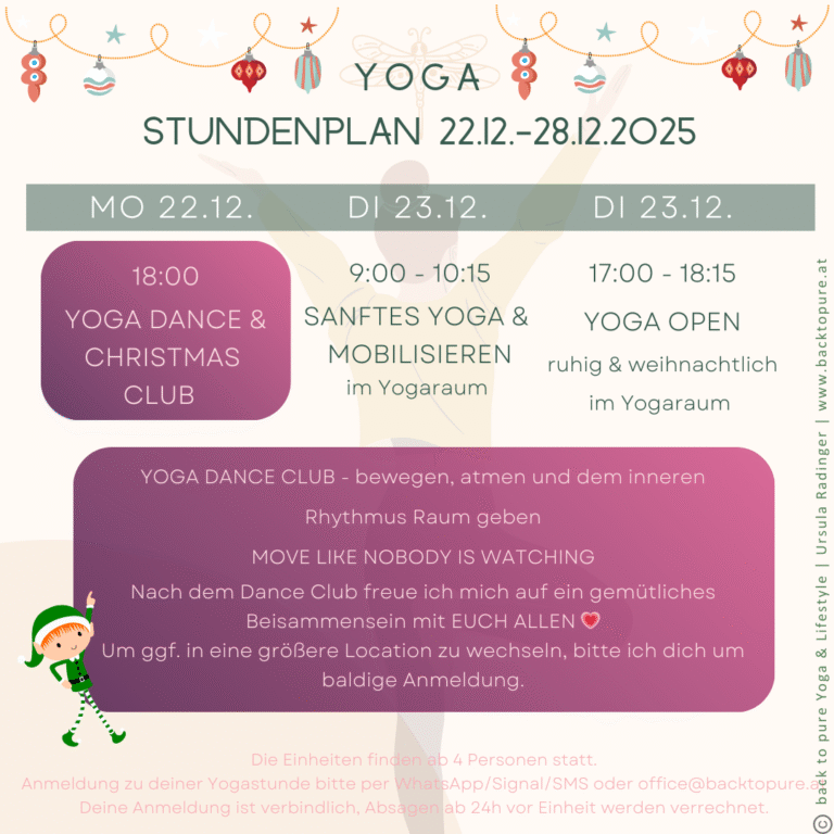 In den Yogastunden kannst du den Raum für dein natürliches Sein erfahren, erforschen und erschaffen. Getragen von wohltuenden und herzhaften Bewegungen, tiefgehender Atmung, schöpferischer Stille und lebendiger Inspiration.